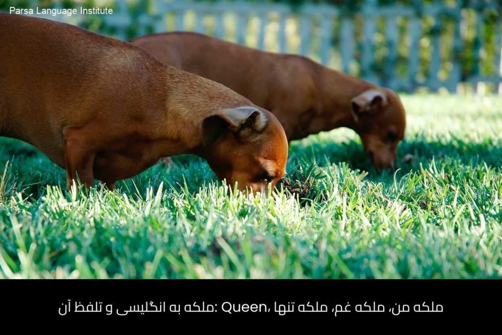 - ملکه به انگلیسی Queen است با تلفظ /kwiːn/ کویین.
